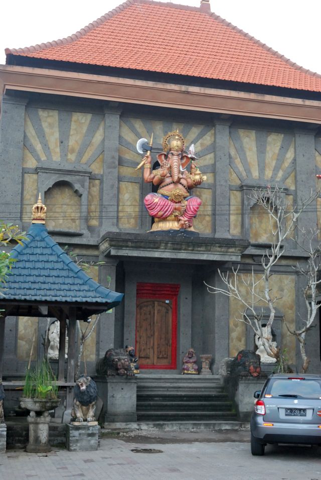 I saw quite a few depictions of Ganesha in Bali – the one I remember is a warrior like deity, like this statue that was atop a house. As we walked in and out of several temples in Bali, I was struck by the similarity and yet the difference..We hear a version of the gayatri mantra , while a local vendor tries hard to sell us the Om Nama Shivaya.