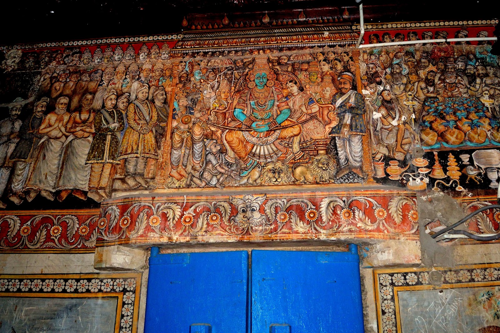 Its so weird to see why people wanted to destroy their own cultural and heritage property this way. They scribble away their names, roll numbers, and stupid things. the murals are gorgeous and intricately painted…Hope the temple authorities take proper care to restore them and make sure such vandalisms are prevented. Also, it should come from each one who visits the temple.
