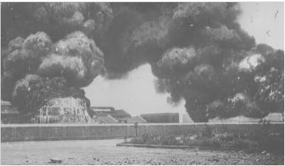 The second photograph – Burma Shell tanks at Madras Harbour were caught fire. In the incident four casualty also there but the pity was all our Indian labours.